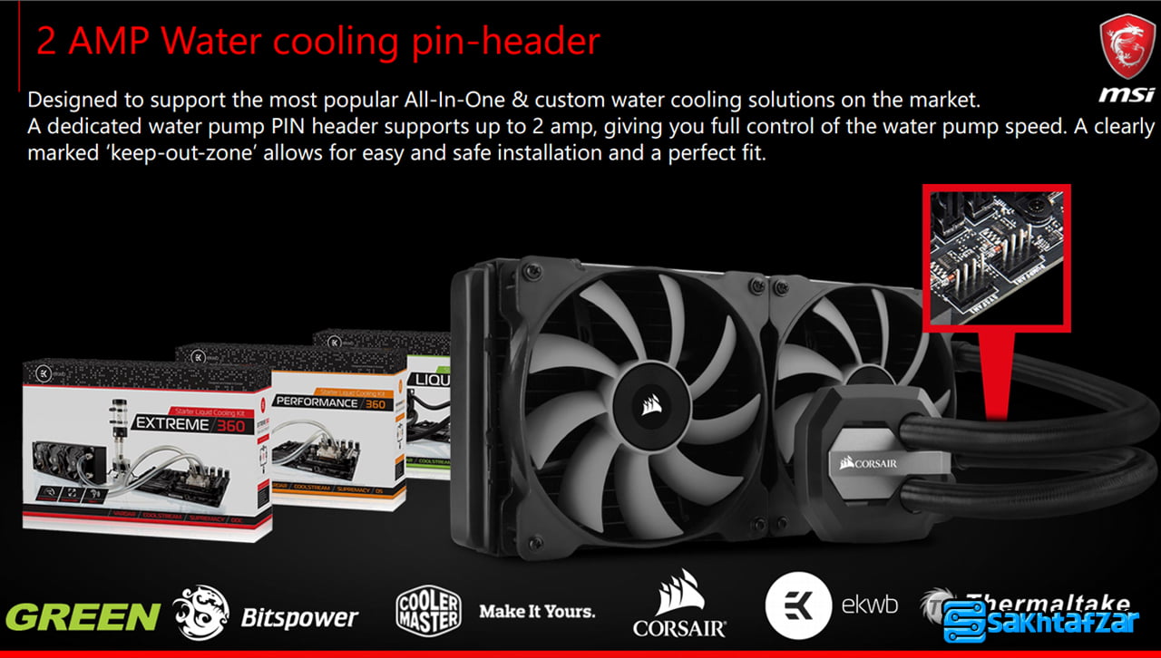 با فراگیر شدن خنک کننده های مایع سیکل بسته، وجود کانکتور های اختصاصی برای راه اندازی پمپ واترکولر بسیار ضروری به نظر می رسد و از این رو، کمپانی MSI در مادربرد های جدید خود دو کانکتور برای این منظور در نظر گرفته است.