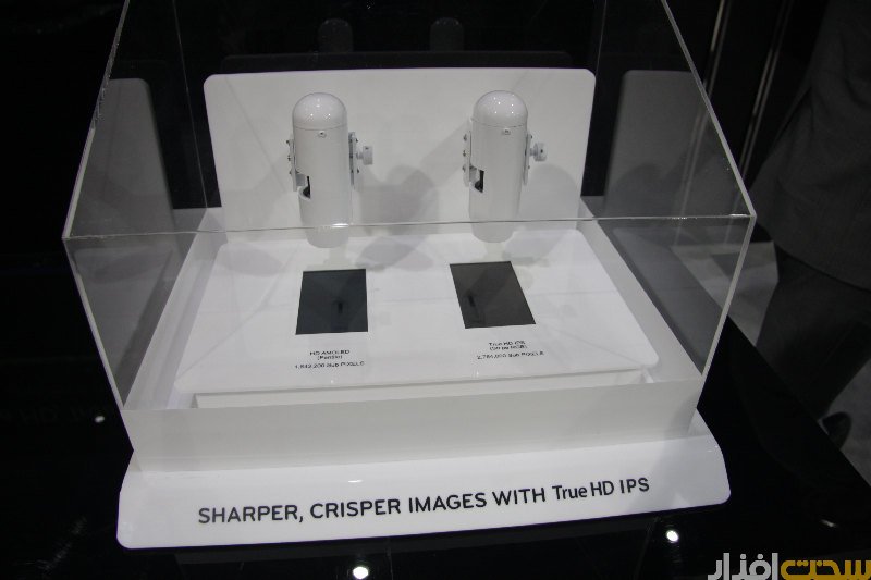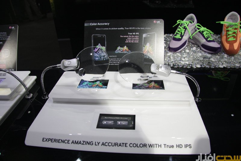 اما اين تمام ماجرا نبود و ال جي با اين موضوع رضايت نداده بود و براي هرچه بيشتر کردن رقابت با AMOLED يک مقايسه عملي ديگر هم گذاشته بود. اين شرکت يک کفش ورزشي در غرفه قرار داد بود که داراي بندهاي فسفري بود و همزمان تصويري از اين کفش در دو صفحهنمايش HD AMOLED و Ture HD IPS نمايش داده ميشد تا کاربر بتواند به طور عملي کيفيت را مقايسه کند (ما چيزي نميگوييم تا ريا نشود).