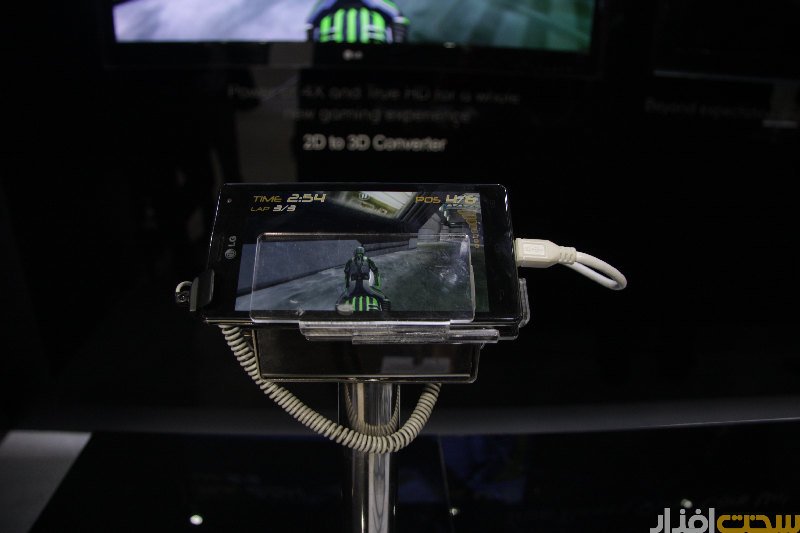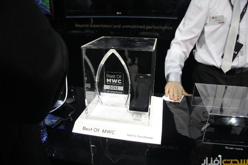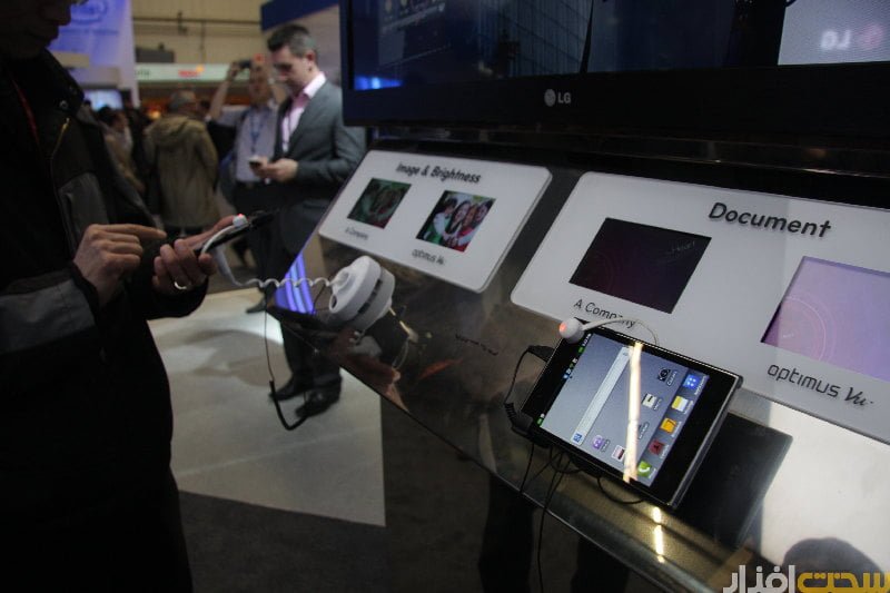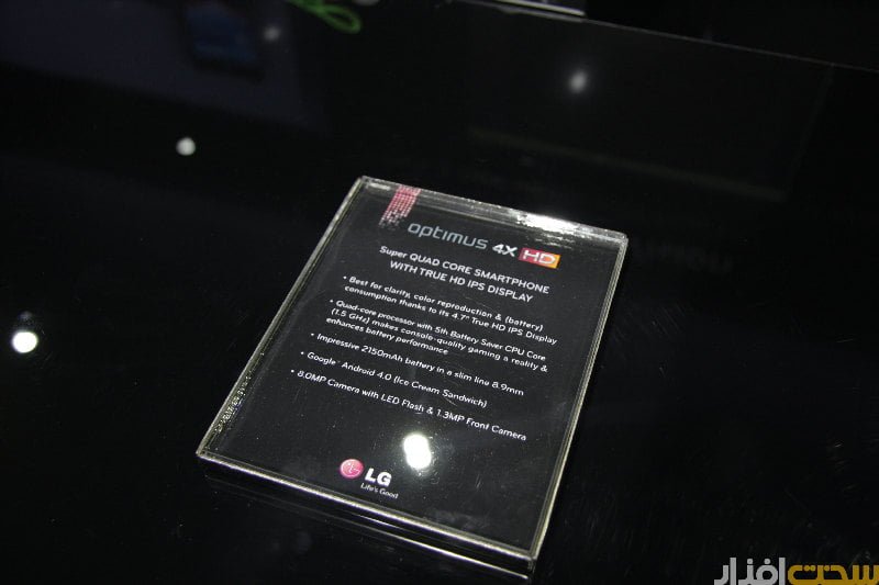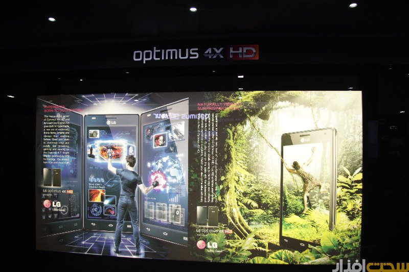 وقتي وارد غرفه ميشديد اولين چيزي که توجه شما را به خود جلب ميکرد لوگوي جذاب Optimus 4X HD که به شما اين نويد را ميداد که تا چند دقيقه ديگر اولين گوشي چهار هستهاي ال جي را خواهيد ديد.