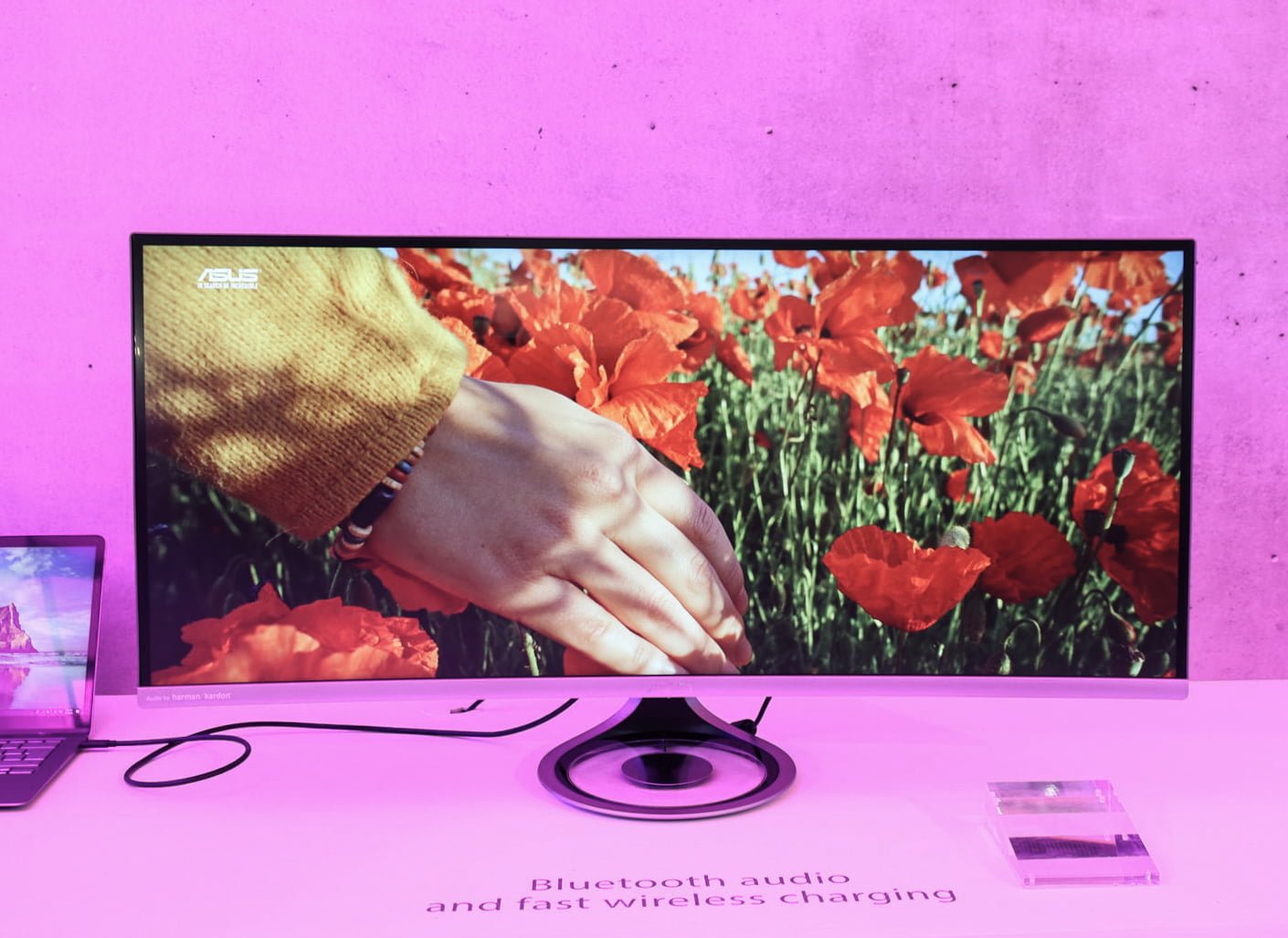 در بخش دیگری از غرفه ایسوس، مانیتورهای جدید این شرکت به چشم می خورند که همگی دارای ابعادی بسیار بزرگ و عمدتا خمیده هستند. ایسوس پیش از این هم مدل های مختلفی از مانیتورهای کاربردی با قیمت های مناسب عرضه کرده بود و همین روند را برای سال آینده نیز ادامه خواهد داد.