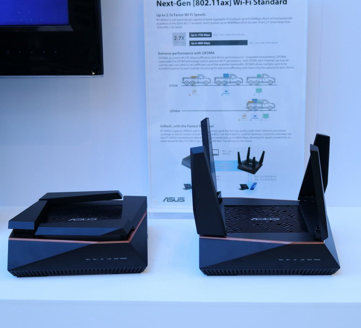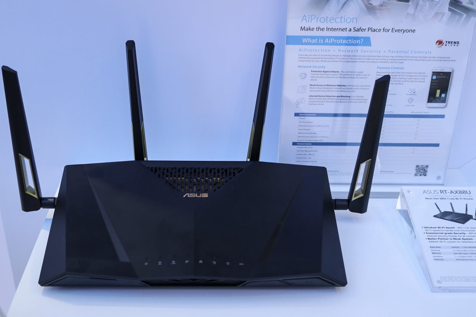 روترها و سیستم های مش نیز دیگر محصولات موجود در غرفه ایسوس به حساب می آیند. مدل RT-AX88U از بین روترهای بیسیم ایسوس از استاندارد 802.11ax استفاده می کند و از سیستم های امنیتی اختصاصی AiProtection این شرکت بهره می برد. چهار آنتن قابل جداسازی با 256 مگابایت حافظه فلش و 1 گیگابایت حافظه رم DDR3 از جمله ویژگی های کلیدی این محصول هستند.