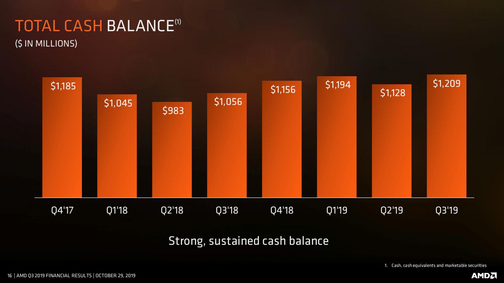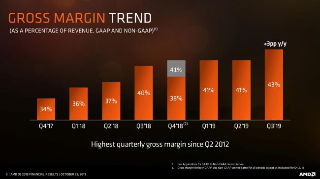 این تراشهساز در سه ماهه اخیر موفق به کسب بالاترین درآمد از سال 2005 به واسطه بیشترین فروش تراشه کامپیوترهای شخصی از سال 2011 شده است. مجموعا AMD در سه ماهه سوم سال 2019 رکورد درآمد 1.8 میلیارد دلاری را به ثبت رسانده که نسبت به سال قبل افزایش 9 درصدی و نسبت به سه ماهه پیشین رشد 18 درصدی را تجربه کرده است.