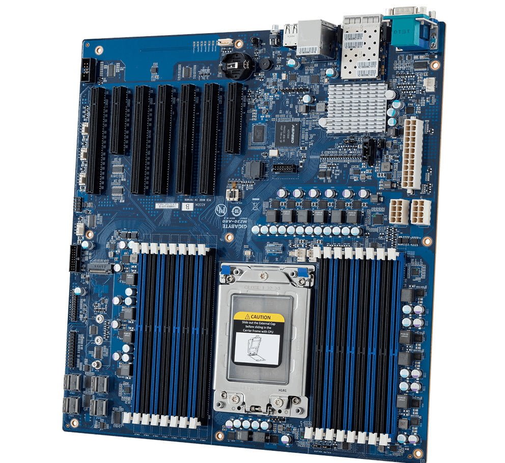 همانطور که می دانید، در شب گذشته و در جریان کنفرانس اختصاصی AMD، این شرکت سری هم به پردازنده های کلاس سرور EPYC زد؛ این محصولات از هسته های ZEN استفاده کرده اما برای استفاده های دسکتاپ طراحی نشده اند. مادربردهای این محصولات نیز مدل های خاص هستند که از سوکت SP3r2 برخوردار هستند. گیگابایت (Gigabyte) به تازگی جدید ترین مادربرد خود موسوم به GIGABYTE MZ30-AR0 را رونمایی کرده است که یک مادربرد مخصوص پردازنده های AMD EPYC 7000 است. این پردازنده ها فاقد چیپست هستند؛ به عبارت ساده تر، AMD تمامی کاربردهای اصلی یک چیپست را در پردازنده مجتمع کرده است.