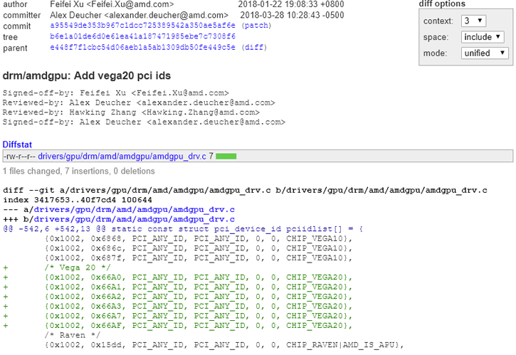 درایورهای لینوکس بارها اطلاعاتی را از کارت گرافیک و پردازنده های آتی افشا کرده و اینبار نیز نوبت به کارت گرافیک های Radeon Vega20 از AMD رسیده است. طبق اطلاعات موجود، 6 نامگذاری جدید مبتنی بر تراشه های گرافیکی Radeon Vega20 وجود دارد که ظاهرا جایگزین دو مدل فعلی Vega 10 خواهند شد. سیلیکون های جدید بر اساس لیتوگرافی های 12، 10 و یا حتی 7 نانومتری تولید خواهند شد.