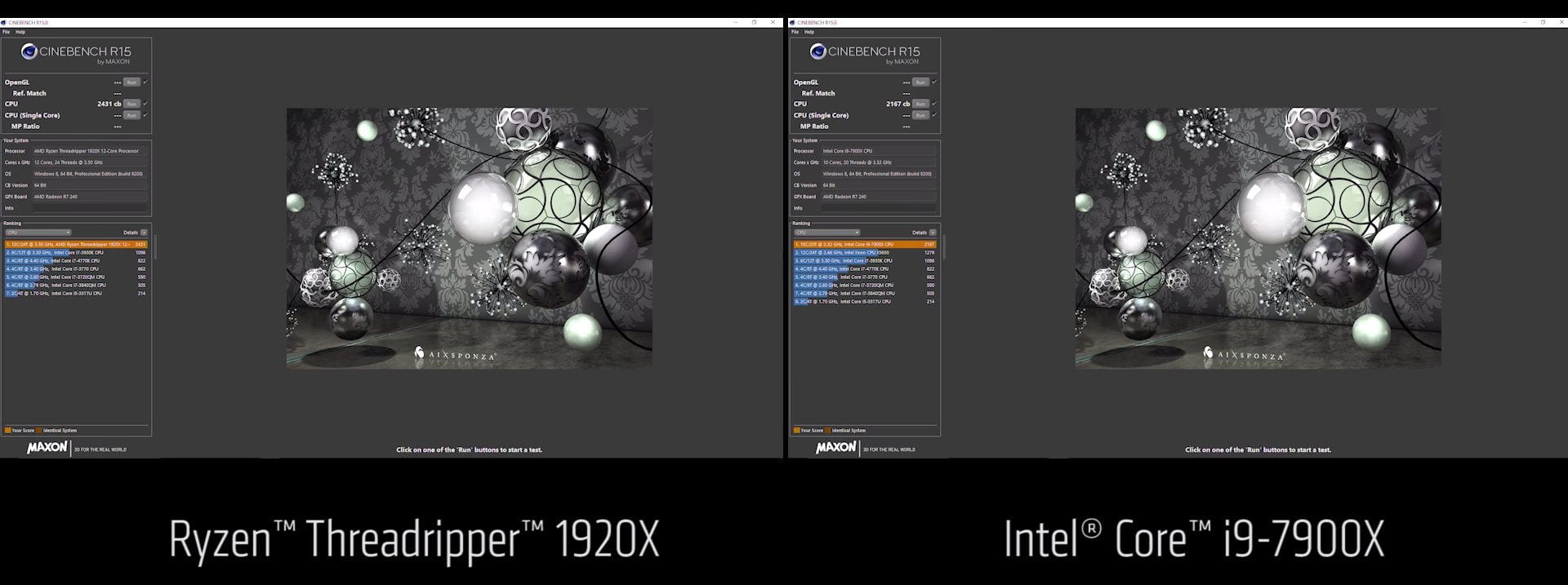 ای ام دی نتیجه گرفته است که پردازنده های آن به نسبت قیمت و امتیاز بدست آمده، نزدیک به 40% بهتر از رقبای خود عمل کرده اند. با این وجود Cinebench R15 تنها یک معیار است و نمی توان پرفورمنس و عملکرد نهایی یک پردازنده را بازی و دیگر موارد بر اساس آن ارزیابی کرد. پردازنده های آینده AMD در مادربردهایی جای می گیرند که چیپست های Whitehaven X399 را حمل می کند.