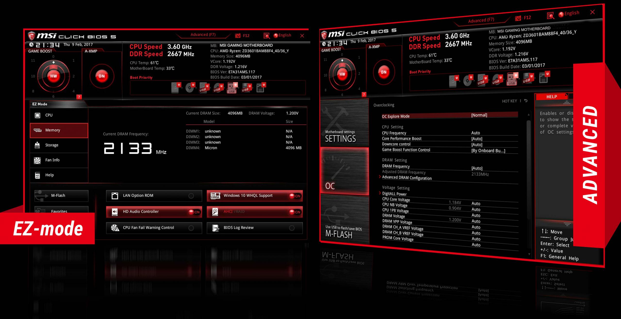افزون بر تمامی قابلیت‌های یاد شده، مادربردهای MSI از BIOS گیمر پسند بهره می‌برند که کار کردن با آن بسیار آسان است. شما می‌توانید از میان حالت آسان و پیشرفته به دلخواه انتخاب کنید.