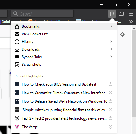 برای شروع باید بر روی نماد Library کلیک کنید و وارد Bookmarks شوید.