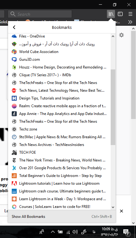 سپس در پایین صفحه بر روی گزینه ی Show All Bookmarks کلیک نمایید تا پنجره ی Library باز شود.