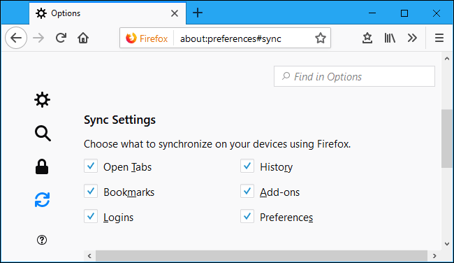 فایرفاکس همچنین دارای قبلیت همگام سازی داده ها در کامپیوترها، گوشی ها و تبلت های دیگر خواهد بود. برای استفاده از این قابلیت می توانید به Menu> Options> Firefox Account رفته و به تنظیمات همگام سازی دسترسی پیدا کنید. اگر هنوز از حساب فایرفاکس استفاده نمی کنید، لازم است تا برای همگام سازی داده های خود به ایجا یک حساب فایرفاکس بپردازید. سپس کافیست تا با آن حساب کاربری در دستگاه های مختلف وارد شوید و به همگام سازی داده بپردازید.