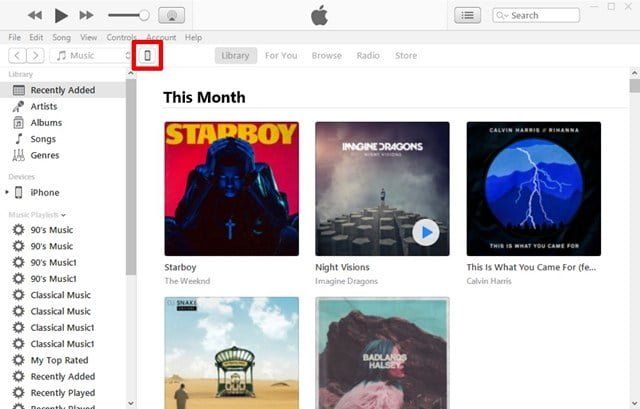 ابتدا iTunes را در کامپیوتر اجراکنید و بر روی علامت گوشی کلیک کنید.