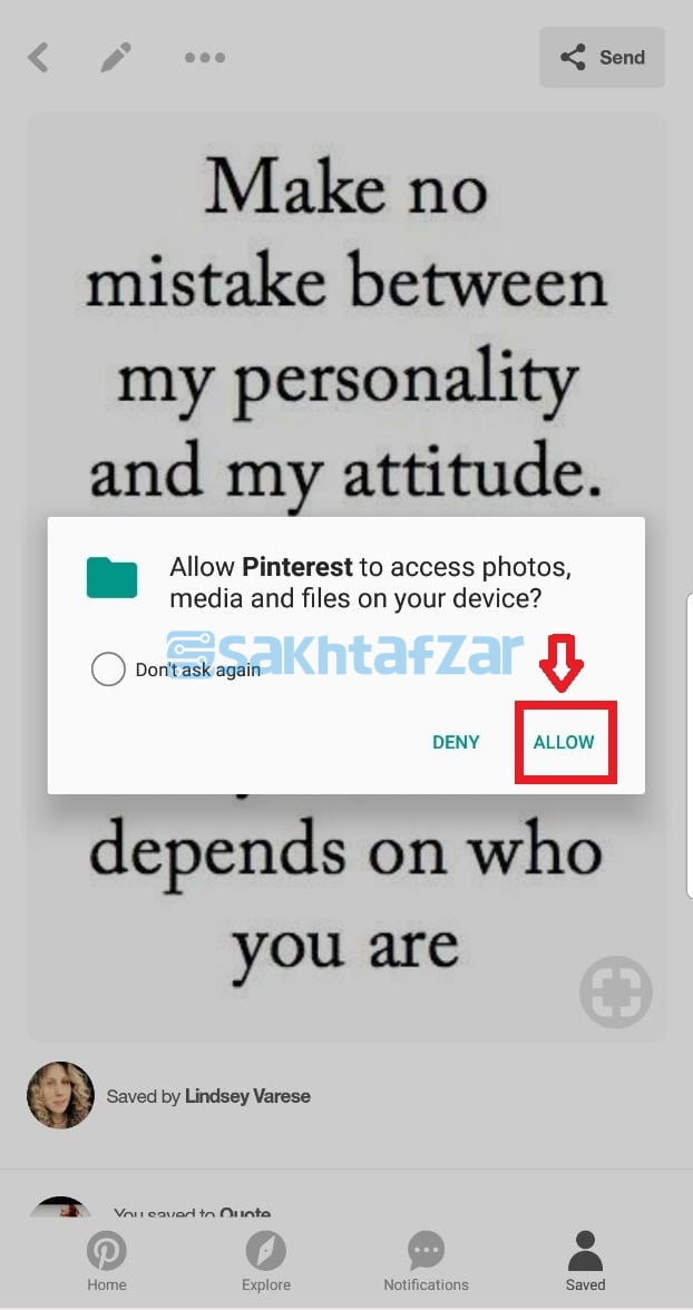 اگر اولین باری است که قصد ذخیره عکس در برنامه را دارید، پیغامی مشاهده خواهید کرد که به برنامه اجازه دسترسی به تصاویر شما را میدهد. در این قسمت گزینه Allow را انتخاب کنید.