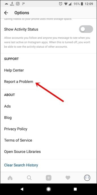 اگر فکر می کنید اشتباهی صورت گرفته می توانید از اینستاگرام درخواست کنید تا این موضوع را مورد بررسی قرار دهد. برای اینکار باید بر روی سه نقطه در بالای صفحه کلیک کنید و گزینه ی Report a Problem را انتخاب نمایید. در کارد باز شده نیز بر روی Report a Problem کلیک کنید.