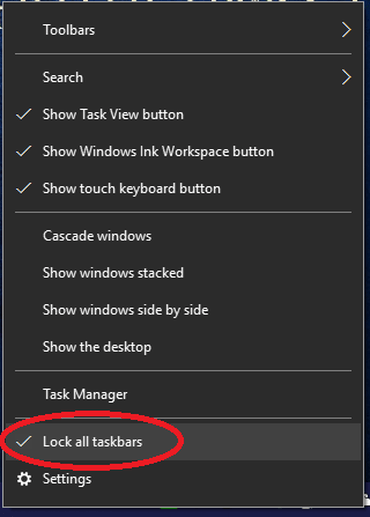اگر نوار وظیفه خود را دوست دارید اما نمیخواهید که در مواقعی که نشانگر موس به صورت اتفاقی بر روی آن قرار میگیرد حرکت یا تغییر اندازه دهد، میتوانید با کلیک راست بر روی نوار تسک بار و کیلیک بر روی Lock all taskbars آن را قفل کنید.
