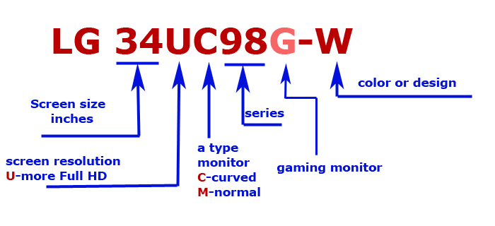 • پس از نام LG، نخستین عدد دو رقمی از سمت چپ نشانگر سایز مانیتور است که در مثال ما، 34 اینچ است.
