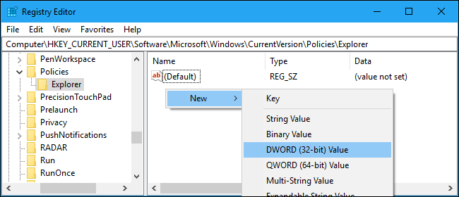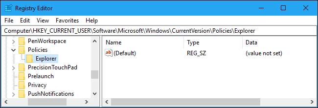 HKEY_CURRENT_USER\SOFTWARE\Microsoft\Windows\CurrentVersion\Policies\Explorer