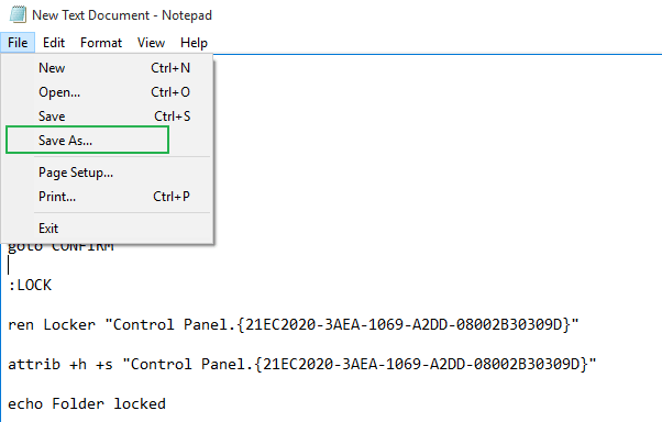 و نام فایل را به FolderLocker.bat تغییر دهید. سپس آن را Save کنید.