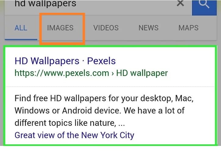 3. نام آن چیزی را که می خواهید دانلود کنید (عکس، فایل، آهنگ و..) ، در نوار جستجو وارد کنید. (به عنوان مثال دانلود عکس پس زمینه با کیفیت HD)