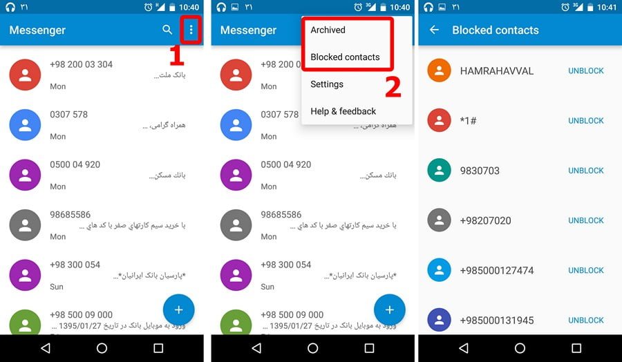 از این پس تمامی SMS های مزاحم آرشیو می شوند. اگر می خواهید آنها را ببینید به بخش Archived بروید. اگر هم مایلید یک شماره بلاک شده در گذشته را از لیست خارج نمایید، بخش Blocked contacts و گزینه UNBLOCK در خدمت شماست!
