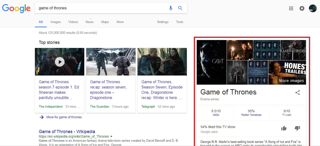 برای آنکه به گوگل اطلاع دهید صفحه اول از جست و جو درباره موضوعی مشخص دارای نتایج اشتباه است کاری نسبتا ساده در پیش دارید. در نسخه جدید صفحه نتایج گوگل و در سمت راست آن یک باکس برای ارائه اطلاعات به صورت خلاصه وجود دارد که به One Box مشهور است. برای مثال اگر درباره یک فیلم جست و جو کنید در این باکس اطلاعاتی درباره بازیگران، کارگردان، پوسترها، میزان فروش و مواردی از این دست را مشاهده خواهید کرد.