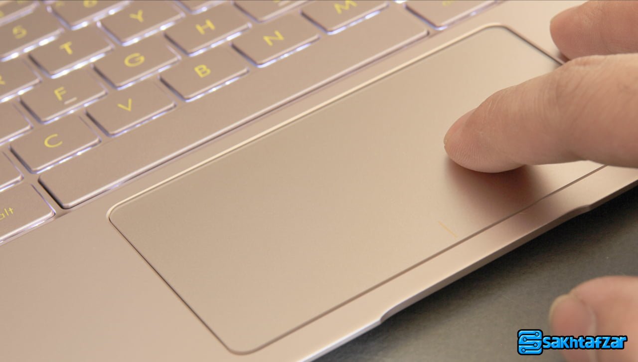 تاچ پد در نظر گرفته شده با ابعاد مناسبی که دارد گردش در فضای ویندوز را بهبود بخشیده است از طرفی این تاچ پد از حساسیت و ساختار مناسبی برخوردار است که کار کردن با آن را مانند بعضی از لپ تاپ ها در این سطح به کاری آزار دهنده تبدیل نمی کند. ساختار استفاده شده لمس انگشت با پنل تاچ پد را با استحکاک کمتری روبرو کرده است این موضوع به این معنی است که نوک انگشت حس رنده شدن را در شما پدیدار نمی کند. اگر در عکس ها دقت کنید تنها شاهد یک تاچ پد ساده هستید اما همانطور که در اول مطلب ذکر شد محصول بررسی شده یک محصول اولیه است و دستگاهی که در بازار فروخته می شود کمی متفاوت است. در محصول نهایی در بخش بالای تاچ پد شاهد یک سنسور اثر انگشت هستیم که در مدل بررسی شده این سنسور وجود ندارد. ایسوس همچنین در تاچ پد این محصول پشتیبانی از تشخیص دست خط را در نظر گرفته است که یک مزیت برای زِن بوک ایسوس محسوب می شود. اما از تاچ پد و سنسور اثر انگشت آن که بگذریم، می رسیم به دکمه های قرار گرفته برای کلیک راست و کلیک چپ که به صورت یکپارچه با پنل تاج در نظر گرفته شده اند. این موضوع شاید از نظر ظاهری مناسب باشد اما عملکرد کلیک ها خوب ارزیابی نشدند. برای کلیک کردن دست خود را بر روی یکی از دکمه ها فشار می دهید اما باز خوردی از آن نمی بینید زمانی که دست خود را از روی دکمه برمیداری تازه شاهد بازخورد دکمه خواهید بود. این موضوع به این دلیل اتفاق می افتد که دکمه های کلیک همچون دکمه های صفحه کلید از حساسیت بسیار بالایی برخوردار هستند و با کوچکترین فشار از خود واکنش نشان می دهند البته ترجیح می‌دادیم در این بخش ایسوس بیشتر بر روی کلیک ها کار می کرد تا همچون دیگر بخش های موجود در زِن بوک در این بخش هم شاهد عملکرد عالی بودیم (هرچند ممکن است در محصول نهایی این مشکل کمرنگ تر باشد).