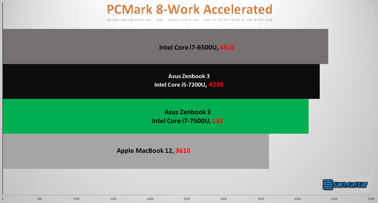ایسوس محصول خود را مجهز به پردازنده اینتل i7 7500U و i5 7200U کرده است. از ویژگی‌های پردازنده i7 7500U می‌توان به معماری ساخت ۱۴ نانومتری، دو هسته پردازشی و چهار رشته موازی، فرکانس کاری 2.7 تا 3.5 گیگاهرتز و ۴ مگابایت کش اشاره کرد. پردازنده i5 7200U دارای ویژگیهایی همچون معماری ساخت ۱۴ نانومتری، دو هسته پردازشی و چهار رشته موازی، فرکانس کاری تا حداکثر 3.1 گیگاهرتز و 3 مگابایت کش اشاره کرد. البته پردازنده‌ای که در لپ تاپ مورد بررسی قرار داشت پردازنده ی i7 6500U بود که این پردازنده مشخصاتی مشابه i7 7500U دارد اما در عمل کمی مشابه i5 7200U بود. ایسوس لپ تاپ خود را مجهز به ۱۶ گیگابایت رم از نوع LPDDR3 کرده است که حداکثر فرکانس ۲۱۳۳ مگاهرتز را داراست. این مقدار رم در کنار پردازنده قدرتمند می توانند نرم افزارها را به خوبی اجرا کنند. پردازنده گرافیکی استفاده شده از نوع پردازنده گرافیکی مجتمع اینتل است. این پردازنده که با کد اینتل اچ دی گرافیک ۶۲۰ شناخته می شود دارای فرکانسی برابر با ۳۰۰ تا ۱۰۵۰ مگاهرتز است. حداکثر توان مصرفی این پردازنده گرافیکی ۱۵ وات است که در کناره قطعات کم مصرف دیگر امید می‌رود تا با طول عمر مناسب باتری در این دستگاه روبرو باشیم. همچنین ایسوس برای ذخیره سازی زِن بوک از سالید ۵۱۲ گیگابایت استفاده کرده که سرعت بسیار بالایی را در انتقال داده به کاربر هدیه می‌دهد.