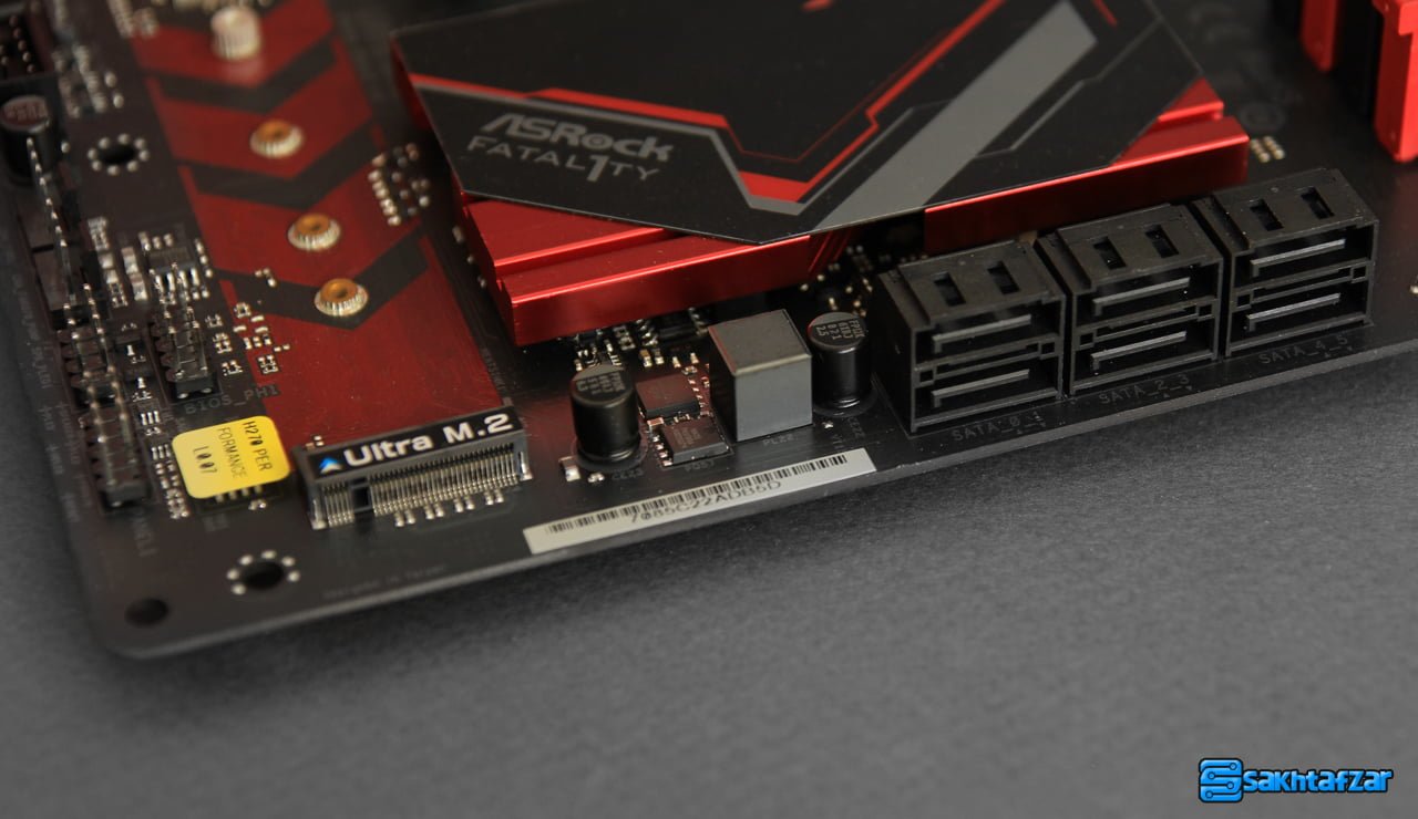 در بالا و پایین دو اسلات PCI Express X16، تعداد دو M.2 قرار گرفته است. این پورت ها که برای سرعت بخشیدن به انتقال داده به کار رفته است، سالید هایی تا 80 میلی متر را پشتیبانی می کنند. همانطور که در بخشی دیگر عنوان شد، ازراک در جلوی هر پورت M.2 چاپ قرمز رنگی را بروی مدار در نظر گرفته است که همین عامل بر جذابیت بصری مادربرد افزوده است. اگر به فکر تهیه سالیدی برای این مادربرد هستید می توانید قبل از خرید، دفترچه راهنما مادربرد را مطالعه کنید تا انتخاب بهتری را در این مورد داشته باشید.