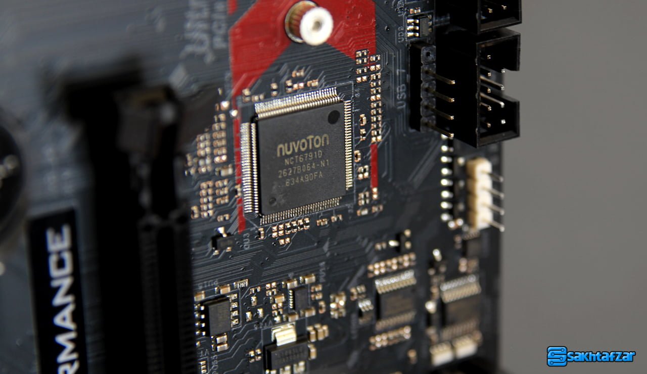 چیپ ست nuvoton nct6793d را می توان در کنار پورت M.2 مشاهده کرد. این عضو از مادربرد قادر به نظارت پارامترهای مهم در سخت افزارهای استفاده شده از جمله ولتاژ، سرعت فن و درجه حرارت است.