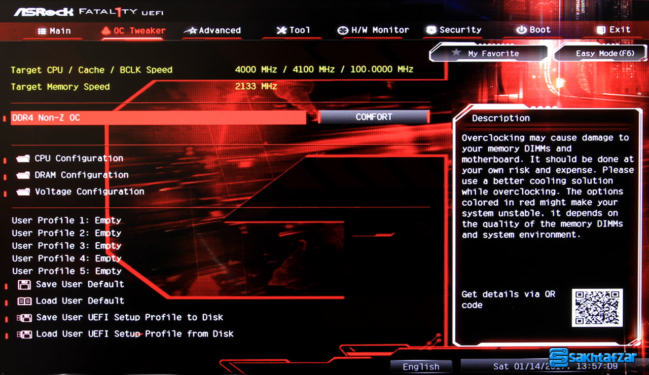 و اما در محیط کاربری حرفه ای، شما می توانید بین گزینه های Main، OC Tweaker، Advanced، Tool، H/W Monitor، Securety و Boot تغییراتی را انجام دهید. در این بخش کاربر می توان ریز ترین موارد از ولتاژ، فرکانس و فعال کردن بسیاری از گزینه های عملکردی را داشته باشد که تمام این موارد در کنار آگاهی از اورکلاک و برخی از موارد سخت افزاری امکان پذیر است و در غیر این صورت ریسک این تغییرات بسیار بالا است.
