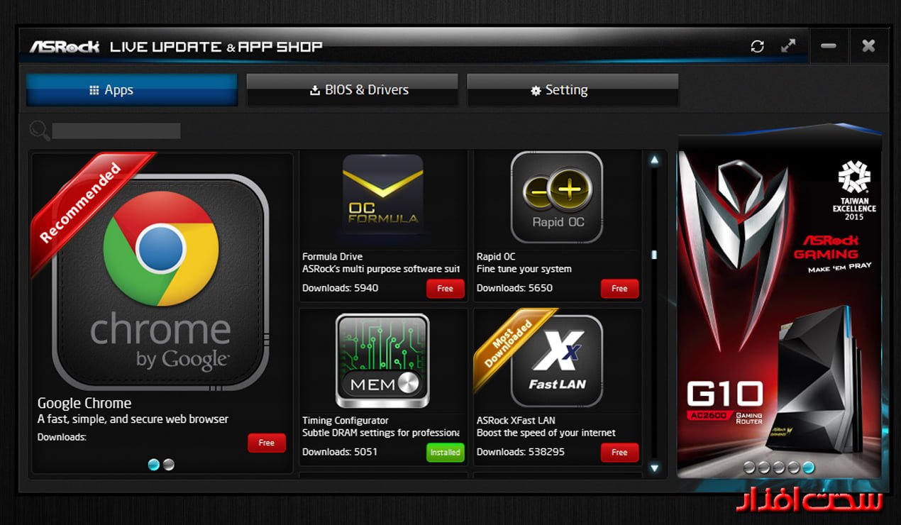 ازراک همراه این مادربرد نرم افزار های جانبی را در نظر نگرفته است. اما می توانید با استفاده از ASrock APP SHOP نرم افزارهای بسیاری را برای این محصول دانلود کنید. از مهمترین این نرم افزارها می توان به Formula Drive، ASRock Rapid OC، ASRock Restart to UEFI، ASRock Timing Configurator، ASRock XFast RAM و FastBoot اشاره کرد. نرم افزارهای یاد شده توان این را دارند تا برای افزایش کارایی سیستم، مانیتورینگ و تغییر فرکانس ها، کاربر را به راحت ترین و کامل ترین شکل ممکن یاری کنند (تصویر 16).