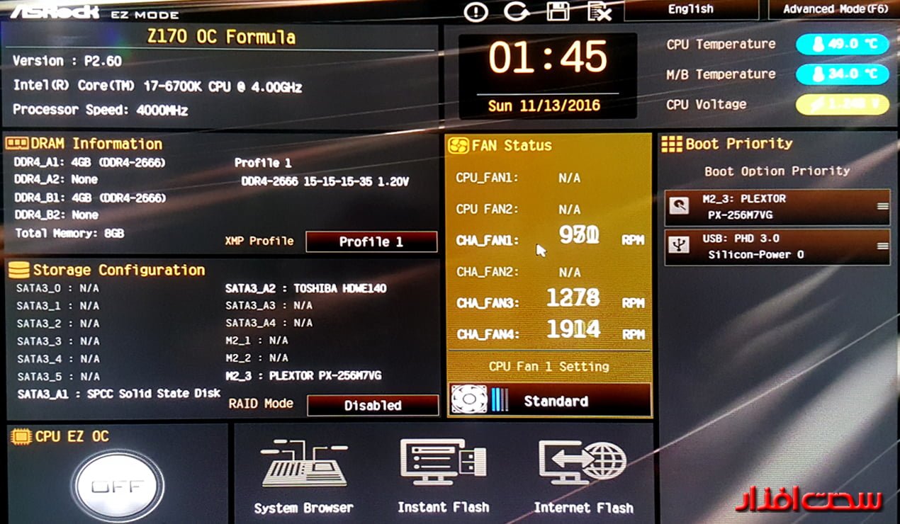 محیط بایوس OC Formula بسیار کاربردی و جذاب است. کاربر می تواند در این محیط به راحتی تغییرات دلخواه خود را اعمال کند. در این بخش شاهد دو محیط ساده و پیشرفته هستیم. محیط ساده آن برای کاربرانی مناسب است که تنها می خواهند با یک کلیک تغییرات را صورت دهند و محیط پیشرفته آن برای کاربران حرفه ای است که می خواهند تک تک تعییرات ریز را به سلیقه خود اعمال کنند. پیشنهاد می کنیم اگر نسبت به سخت افزار و این محیط شناخت کافی ندارید بهتر است اصلاً سمت گزینه پیشرفته نروید زیرا می توان تنها در یک اقدام یک قطعه را کاملاً نابود کرد (تصویر 17).