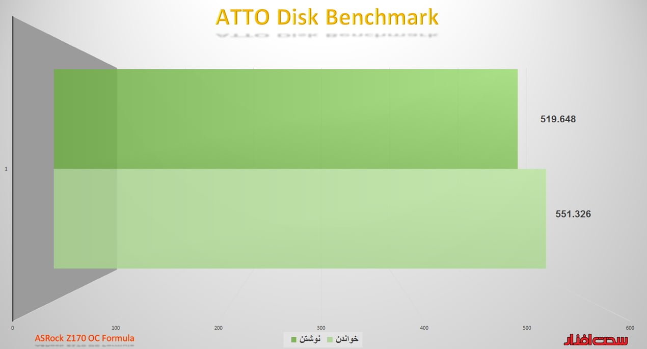 ATTO Disk Benchmark : نرم افزاری برای تست منابع ذخیره سازی با دقت بالا. این نرم افزار بعد از انتخاب منبع ذخیره سازی، قطعه را با حجم های مختلف تست می کند و سرعت خواندن و نوشتن آن را نشان می دهد.