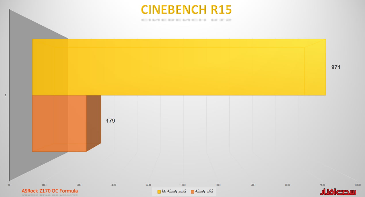 CINEBENCH R15 : نرم افزاری برای تست پردازنده و کارت گرافیک. این نرم افزار پس از تست قطعه مورد نظر امتیازی را بر اساس فریم ثبت شده در ثانیه عنوان می کند. پس از درج امتیاز می توان نتایج به دست آمده از دیگر محصولات را در جدولی مشاهده کرد. در حالت حرفه ای، این نرم افزار می توان پردازنده را به صورت تک هسته ای یا با تمام هسته های موجود بررسی کند. برای امتیاز دهی در بخش کارت گرافیک با پخش ویدیو سه بعدی عملیات امتیاز دهی انجام می شود و می توان از نتیجه به دست آمده به راحتی اطلاع یافت.
