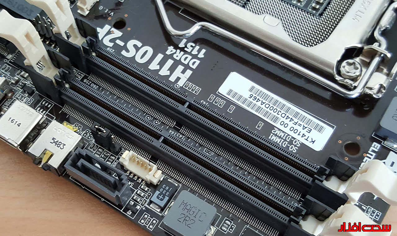 الایت گروپ در مدل ECS H110S-2P که مدتی قبل آن را بررسی کردیم، برای هر چه کوچکتر کردن PCB مشکی رنگ، از 2 اسلات حافظه SO-DIMM استفاده کرده بود (به قول خودمان رم لپ تاب).