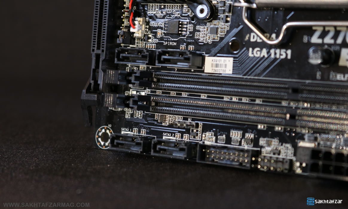 در زیر اسلات های رم تعداد 4 پورت SATA III از نوع 6 گیگابیت در ثانیه قرار گرفته است که برای مادربردی با این ابعاد کاملاً مناسب است.