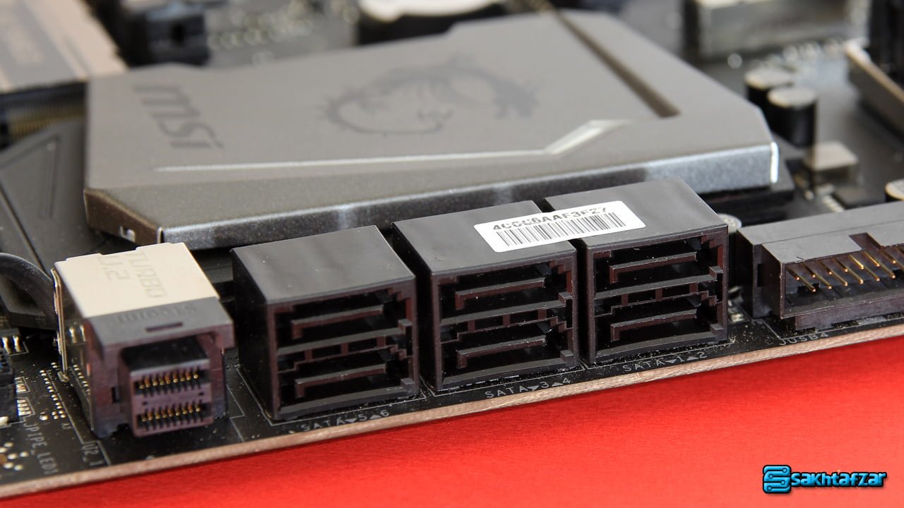 در سمت دیگر مادربرد مجموع 6 پورت ساتا 6 گیگابیت در ثانیه استفاده شده است که در کنار آن می توان پورت پر سرعت U.2 را مشاهده کرد.