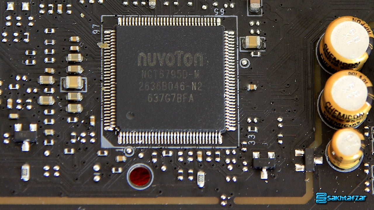 چیپ ست nuvoton nct6793d را می توان در کنار قطعات کارت صدا مشاهده کرد. این عضو از مادربرد قادر به نظارت پارامترهای مهم در سخت افزارهای استفاده شده از جمله ولتاژ، سرعت فن و درجه حرارت است.