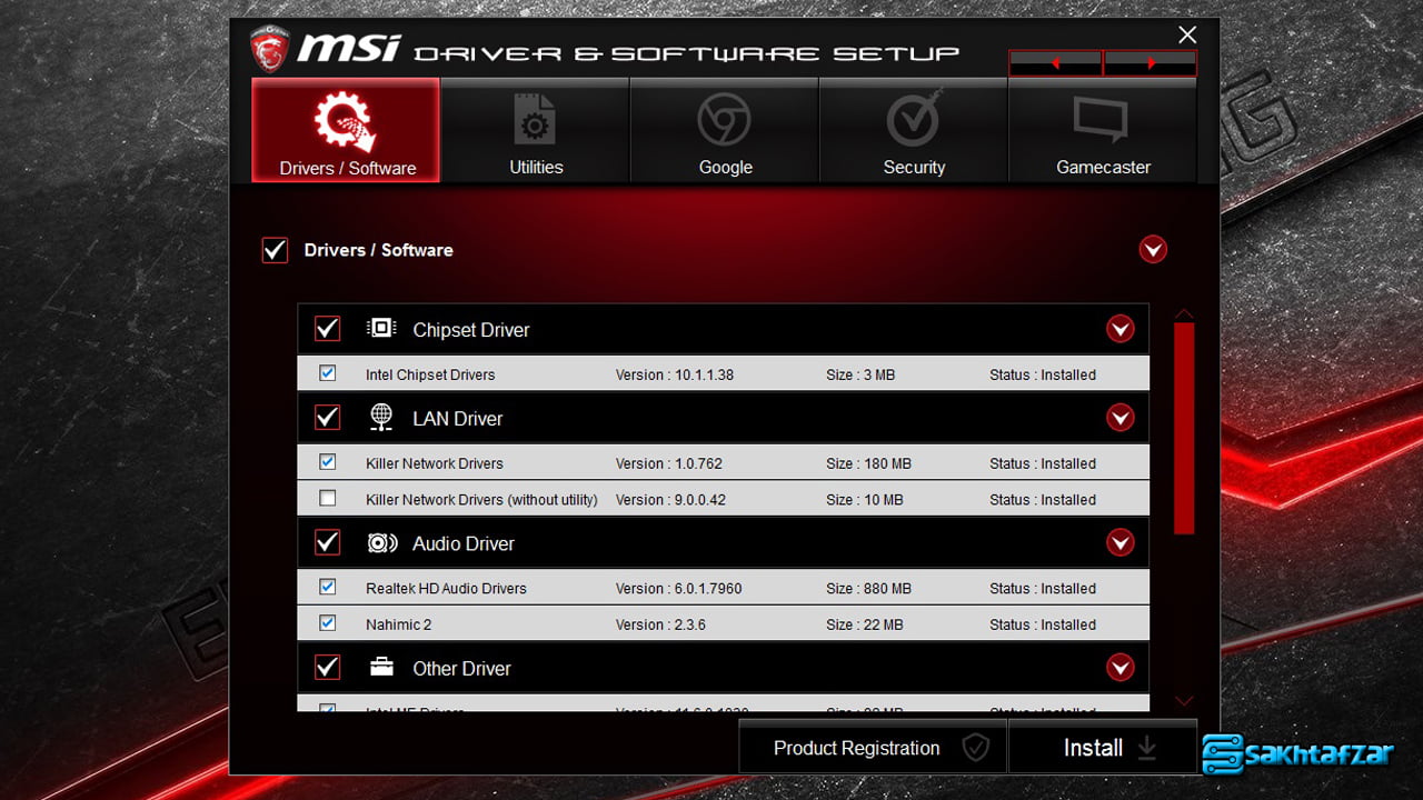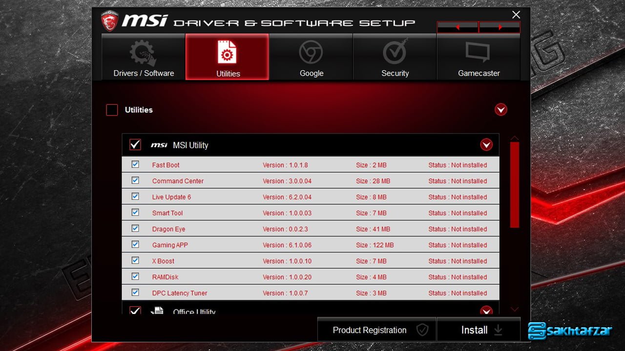 سی دی درایوری که به همراه مادربرد است را نصب می کنیم. ام اس آی برای نرم افزارهای جانبی سنگ تمام گذاشته است و برای هر آنمچه که لازم دارید نرم افزارش را قرار داده است.