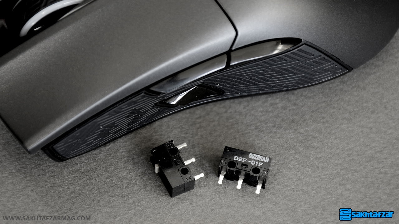 اما نکته ای که در این  میان جالب است این است که سویچ قرار گرفته بروی ماوس با کد D2FC-F-K شناخته می شود و سویچ موجود در جعبه یا کد D2F-01F. بعد از چند روز استفاده از این ماوس به این فکر افتادیم تا سویچ های یدکی را استفاده کنیم. با وجود این که این سویچ ها مشابه هم هستند اما این تغییر کدها بی دلیل نبوده و به میزان بسیار اندکی تغییرات در رفتار سویچ ها دیده می شود. سویچ های قرار گرفته بروی ماوس کمی سنگین عمل می کنند اما سویچ های یدکی عملکرد سریع تر را از خود نشان می دهند. این نکته را نباید عیب دانست بلکه کاربر می تواند با توجه به سلیقه خود و کارایی که از ماوس انتظار دارد، به تعویض این سویچ ها بپردازد.