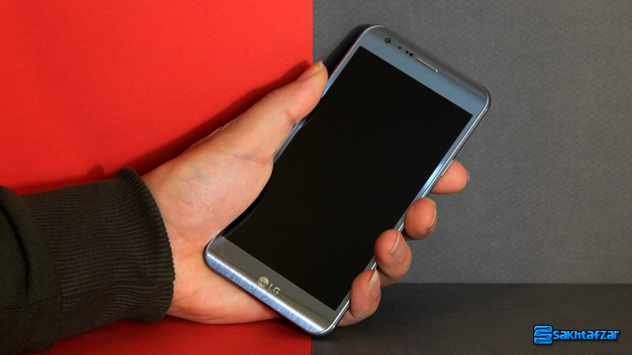 در نمای روبرو می توان پنلی مشابه فلز برس خورده را مشاهده کرد که ظاهر مناسبی را در این بخش به گوشی بخشیده است. ال جی در لبه های بالایی  و پایینی کمی انحناء را در نظر گرفته است که همین موضوع ارگونومی مناسبی را به همراه داشته است و قرار گرفتن گوشی در جیب یا کیف را به کاری راحت تبدیل کرده است. در این نما همچنین می توان اسپیکر مکالمه، سنسور نور و سنسور مجاورت، چراغ اعلانات، دوربین ثانویه، صفحه نمایش 5.2 اینچی و نشان ال جی را مشاهده کرد. در کل نمای روبرو گوشی را باید مناسب ارزیابی کرد اما تنها یک نکته منفی در بین وجود دارد که آن هم نسبت کم صفحه نمایش به بدنه است به طوری که حاشیه های بالا و پایین نمایشگر زیاد است و با نسبتی برابر  با 68.7 درصد روبرو هستیم که عدد مناسبی نیست، هر چند در این رده از محصولات نباید انتظار طراحی بسیار پیچیده ای را داشت.