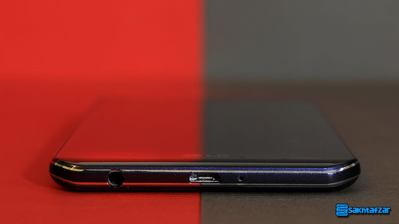 در نمای روبرو کمی یاد پرچمدار این شرکت یعنی V20 می افتیم. پنلی در بالا و پایین گوشی که به رنگ بدنه در آمده است در کنار قاب مشکی دور نمایشگر که هارمونی جذابی را در این بخش به وجود آورده است. در این نما می توان اسپیکر مکالمه، سنسور مجاورت و سنسور نور، دوربین ثانویه، نمایشگر 5.3 اینچ و نشان ال جی را مشاهده کرد. نمای این بخش را باید با وجود ساده بودن، کاملا هماهنگ و زیبا خواند.