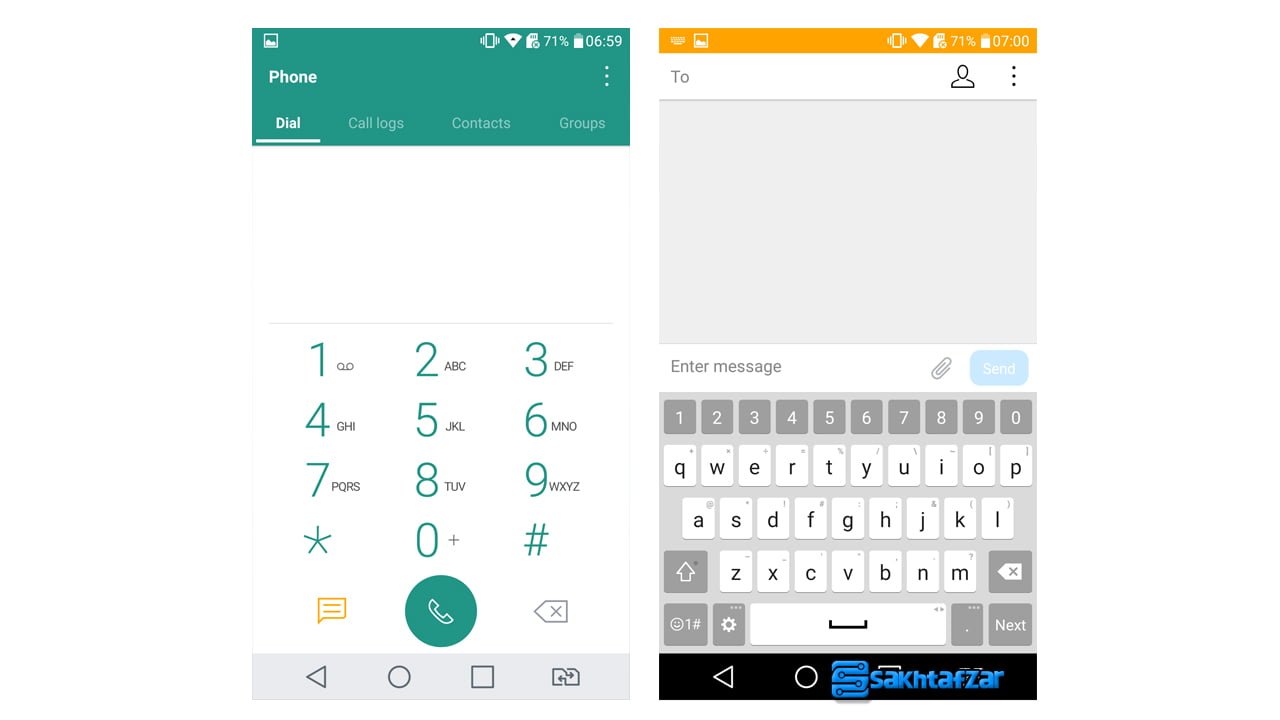 در بخش شماره گیری، اعداد بزرگ با فاصله مناسب کارکرد این بخش را تسهیل کرده است. اگر از دو سیم کارت در دستگاه خود استفاده می کنید می توانید با دکمه لمسی اختصاص یافته در نوار وظیفه پایین، بین سیم کارت های خود سویچ کنید. در نرم افزار پیام رسان راحتی کار مناسب است که آن را باید مدیون صفحه کلید مناسب UX 5.0 بود.