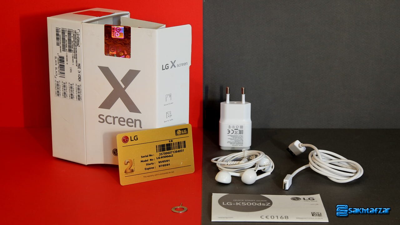 در برخورد اول با جعبه محصولات ال جی، این رنگ سفید است که بیشترین بازتاب را در بین رنگ های استفاده شده دارد. جعبه این گوشی هوشمند در نمای روبرو دارای نشان X بزرگی است که نشان دهنده ی سری آن یعنی عضوی از خانواده ایکس است. در زیر نشان ایکس نام SCREEN درج شده است. نشان ال جی با ابعادی ریزتر از دو نشان دیگر، در پایین جعبه جای خوش کرده است. جعبه این گوشی هوشمند با نوشته هایی به رنگ نقره ای مزین شده اند.