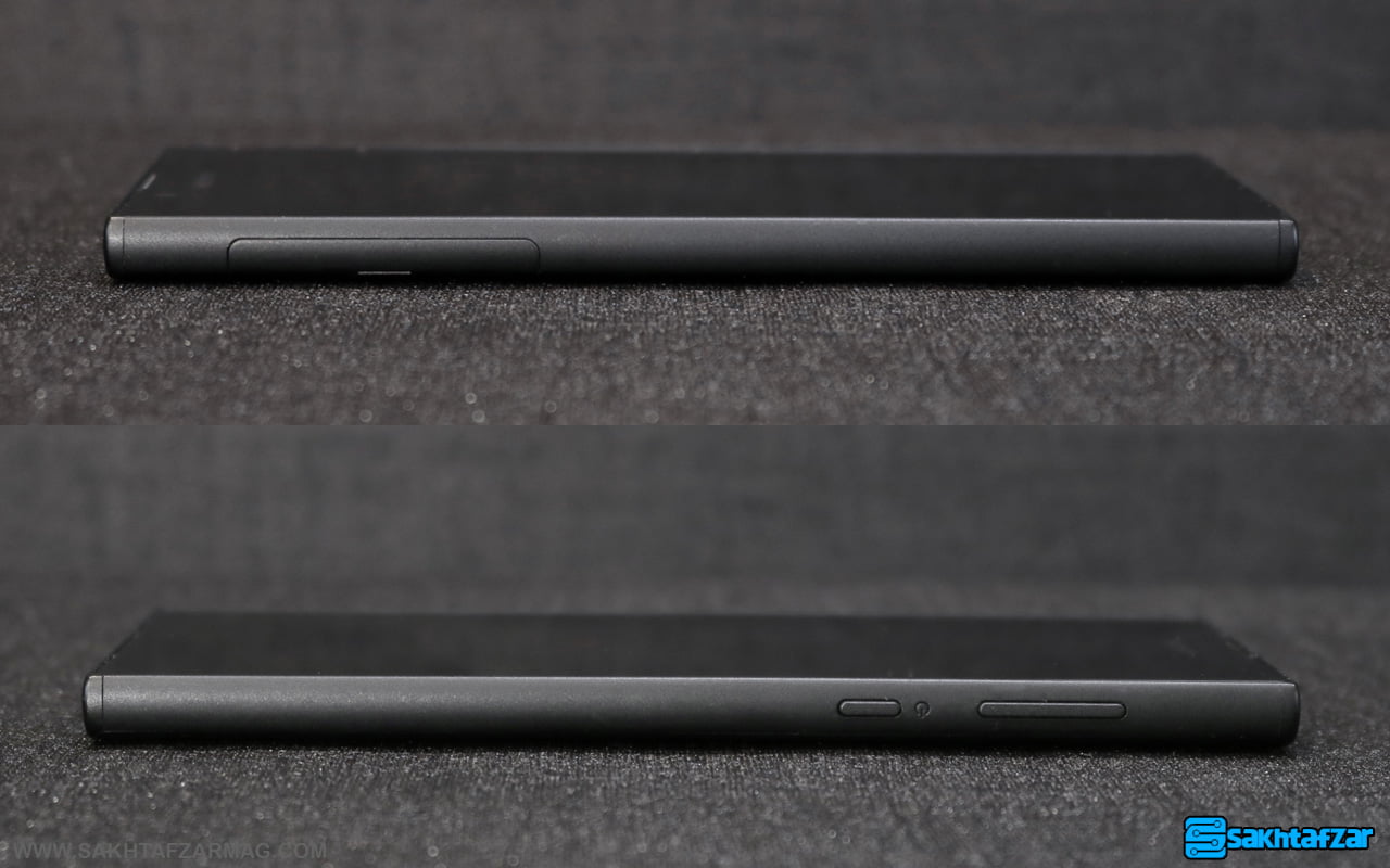 برای بالا بردن ارگونومیک گوشی، در لبه ها شاهد انحنای کمی هستیم که نقش مهمی را در خوش دست بودن گوشی بازی می کند. سمت راست گوشی با دکمه های پلاستیکی پاور (روشن/خاموش) و کنترل حجم صدا تزئین شده است. معمولاً در محصولات سونی شاهد دکمه شاتر بودیم اما در اکسپریا ال 1 از این دکمه خبری نیست. سمت دیگر گوشی تنها به درگاه اسلات مشترک سیم کارت و کارت حافظه جانبی مجهز شده است. بهتر است سونی ساختار درگاه سیم کارت را با تغییراتی روبرو سازد تا مانند بسیاری از گوشی های این شرکت، بعد از مدتی استفاده با شل شدن یا جدا شدن درگاه روبرو نشویم.