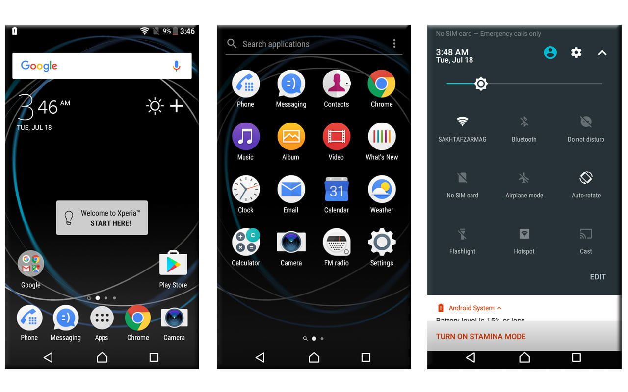سونی در این محصول به صورت پیش فرض از اندروید 7 استفاده کرده. ظاهر این رابط کاربری تفاوتی با دیگر محصولات این شرکت ندارد ولی همچنان با آرایشی جذاب و آیکون های زیبا در آن طرف هستیم که به لطف اندروید 7 کارایی آن بسیار خوب و کاربر پسند شده است .