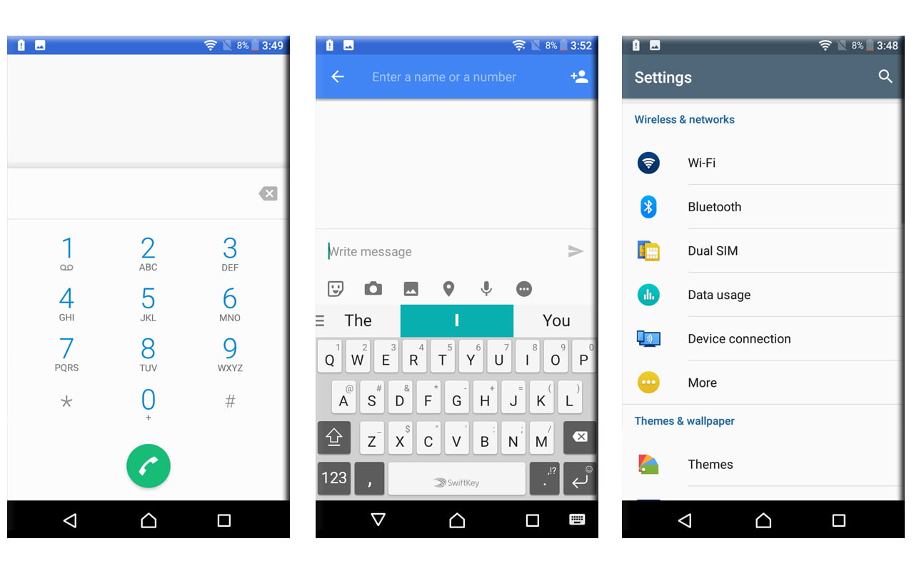 در بخش شماره گیری با توجه به ابعاد صفحه نمایش دکمه ها کمی بالا هستند و ممکن است کاربر نتواند با یک دست به راحتی شماره گیری کند. صفحه کلید مجازی محصول SwiftKey است که بسیاری از کاربران آن را می شناسند و از عملکرد و دقت آن شناخت دارند .