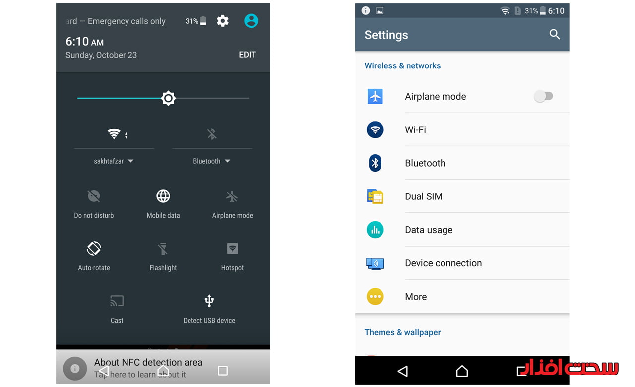 در بخش نوار اعلانات و تنظیمات کمی زمان میبرد تا کاربر به این بخش عادت کند. در این بخش می توان برای تسریع در عملکرد شخصی سازی هایی را در نظر گرفت یا به سرعت به بخش منوی تنظیمات مزاجعه کرد و یا پروفایل مجزایی رابرای هر فرد در نظر گرفت (مثلا پروفایل والدین یا پروفایل فرزند خانواده) . منو تنظیمات کاملا ساده است و همه چیز در دسترس کاربر قرار دارد تا به سرعت به گزینه مورد نظر مراجعه کند .