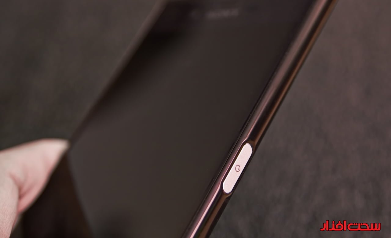پنل فلزی اطراف گوشی با ساختاری خمیده، قرار گیری در دست را برای کاربر راحت تر کرده است و حس خوبی را منتقل می کند. در لبه ها می توان مهمترین بخش طراحی سونی را مشاهده کرد. دکمه پاور که به رنگ نقره ای در آمده و مجهز به سنسور اثر انگشت است را می توان یکی از نقاط قوت این طراحی دانست این دکمه با انحناء و ابعادی که دارد، ایده جالبی است برای حضور سنسور اثر انگشت. بعد از شناسایی اثر انگشت کاربر، برای باز شدن قفل گوشی باید دکمه پاور را فشار داده تا همزمان با شناسایی اثر انگشت قفل گوشی باز شود. به دلیل محل قرار گیری تنها می توان با انگشت شصت این کار را انجام داد. عملکرد این سنسور خوب است اما در مدت زمانی که گوشی در دستمان بود، بارها پیش آمد که قفل صفحه را به اجبار با پین داده شده باز کردیم (تصویر 5).