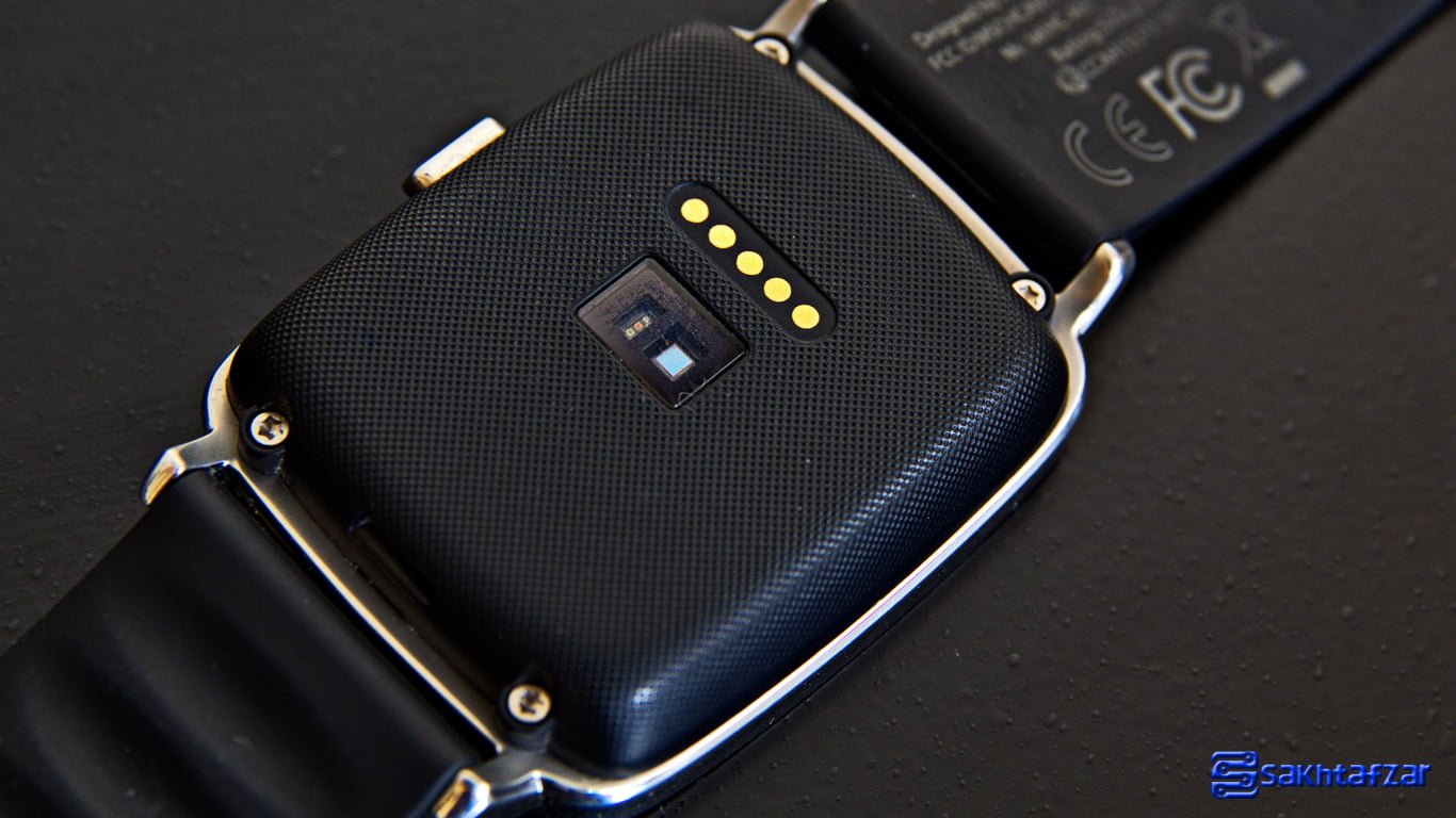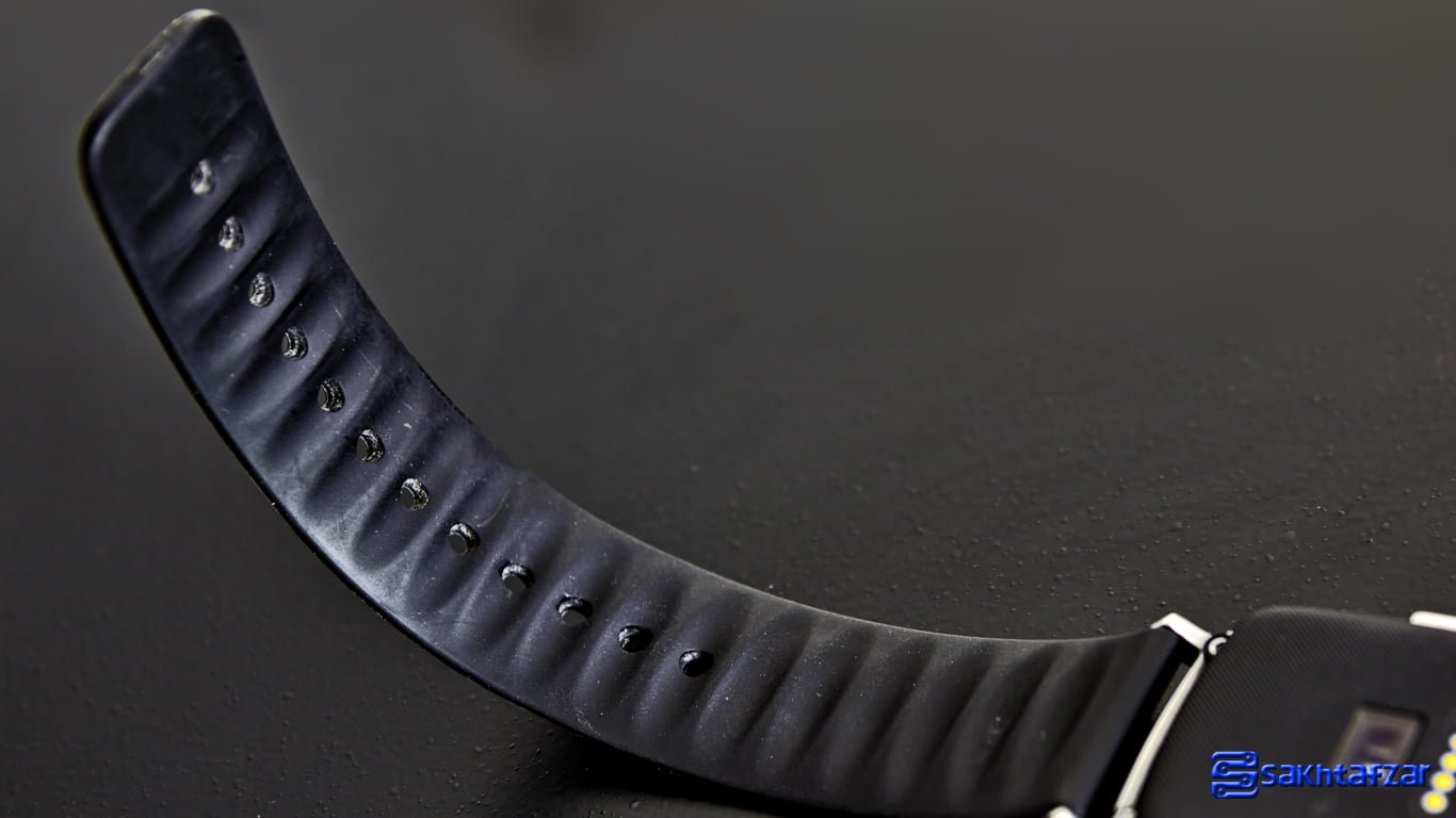 در امتداد فریم فلزی گیره های اتصال بند دیده می شود. این بند های 22 میلی متری که از نوع سیلیکون هستند، ارتباط مستحکمی با مچ درست برقرار می کنند که ممکن است این مورد باعث عرق کردن زودهنگام مچ شود. طراحی این بند بروی آن دارای نقطه های ریز برجسته است که باعث میشود لک و اثر انگشت بروی آن نمود پیدا نکند اما استعداد بالایی در جذب گرد و خاک دارد. در پشت بند ها شاهد ساختاری حفره ای هستیم که جمع شدن و باز شدن بند را برای کاربر راحت تر کرده است، از طرفی مانند بند های چرمی و بسیاری از ساختار های انعطاف پذیر، با تغییر شکل بندها در دراز مدت روبرو نیستید. البته این نکته را هم در مورد بند ها باید خاطر نشان شویم که این نوع بندها قابلیت انعطاف بالایی ندارند و با همان ساختاری که شکل گرفته اند به فعالیت خود ادامه می دهند. این مورد برای تغییر شکل ندادن بند کاملا مثبت است اما زمانی که بند را دور مچتان می بندید، برای جلوه بهتر باید گیره های موجود بروی بند را کمی جابجا کنید تا بند دوم بروی بند چسبیده به مچ دست به خوبی قرار گیرد تا مانند یک تکه اضافه دیده نشود. پشت یکی از بندها نوشته هایی در مورد این محصول دیده می شود که بعد از مدتی با تعرق دست این نوشته ها پاک می شوند.