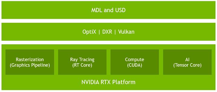 NVIDIA NGX SDK یک پشته فناوری جدید آموزش عمیق است که قابلیت های مبتنی بر AI را فراهم می سازد، که سرعت و افزایش عملکرد گرافیک، عکس برداری و پردازش تصویر را به طور مستقیم به برنامه های کاربردی نظیر بازی و برنامه های مهندسی ارائه دهد. جالب است بدانید که NVIDIA NGX تنها با هسته های Tensor سازگار بوده بوده؛ آن هم هسته هایی که تنها در کنار هسته های RT در یک سیلیکون جمع آوری شده اند. این محدودیت، به خودی خود بیانگر آن است که AI هم در تکنیک Ray Tracing بدون تاثیر نخواهد بود. پلتفرم پردازشی RTX دارای چندین API یا کتابخانه است. به چند نمونه از آنها در این مقاله اشاره کردیم؛ در موارد دیگر می توان به PhysX، FleX و CUDA 10 اشاره کرد. وجود چندین API برای هسته و کاربردهای گوناگون، انعطاف پذیری پلتفرم RTX را ثابت می کند. با تمام این احوال، اشتراک گذاری داده های مهم بین توسعه دهندگان نیز یک مسئله خاص و مهم است. انویدیا برای این منظور NVIDIA Definition Language (MDL) را به عنوان یک برنامه “متن باز” معرفی کرده است. افزون بر آن، NVIDIA MDL نیز توسط بسیاری از برنامه های کاربردی از جمله Adobe، Allegorithmic و Epic Unreal Studio پذیرفته شده است. در رندر نهایی کارت گرافیک های RTX سه بخش مهم به صورت پیاپی اجرا می شوند که همچنان بهبود تصاویر و نزدیکی به واقعیت را در آنها در پی دارد؛ رندر Multi-View، بافت سایه ها و متغییر رنگ های سایه.