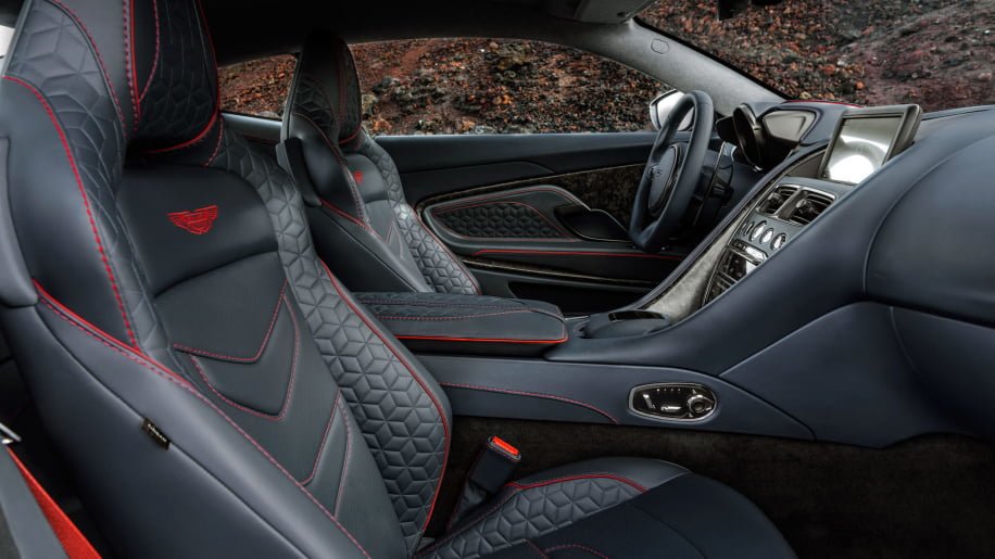 طراحی داخلی این خودرو با طوفانی از چرم و آلکانترا و فیبر کربن آمیخته شده. این موضوع چندان نمایانگر پیشینه کلاسیک این خودرو نیست اما اگر پول بیشتری برای آن پرداخت کنید استون مارتین ترکیب تریم کلاسیک تری را در اختیارتان خواهد گذاشت که حتی میتوانید جزییات دقیق آن را خودتان انتخاب کنید. قدرت دی بی اس سوپرلجرا نیز 715 اسب بخار بوده و 664 فوت-پوند گشتاور آن می باشد. به لطف توربو شارژرها این گشتاور را میتوانید از دور موتور 1800 تا 5500 در اختیار داشته باشید اما بیشینه قدرت پیشرانه این خودرو را در دور موتور 6500 تجربه خواهید کرد.